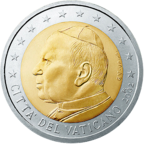 Van 2002 t/m 2005 stempelde het Vaticaan al zijn Euromunten met het gezicht van paus Johannes Paulus II, het voormalig hoofd van het Vaticaan.