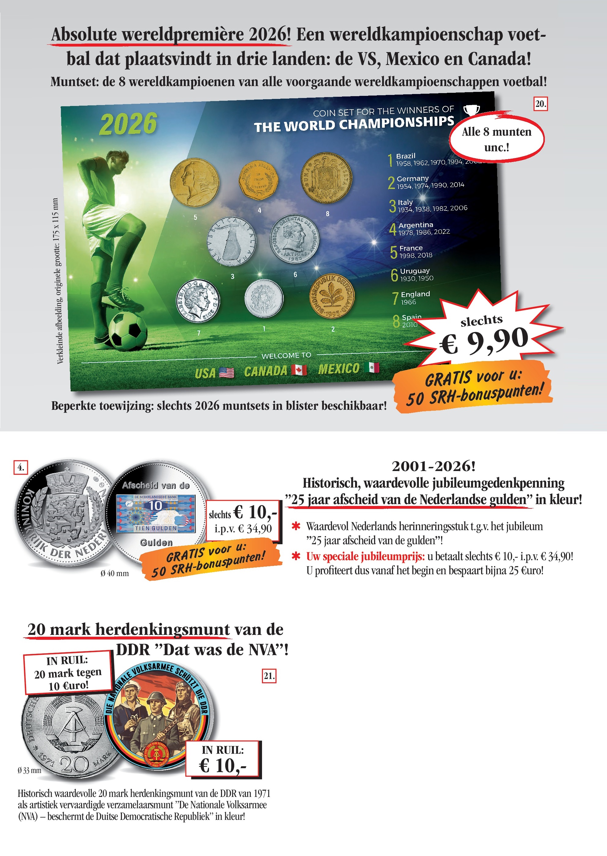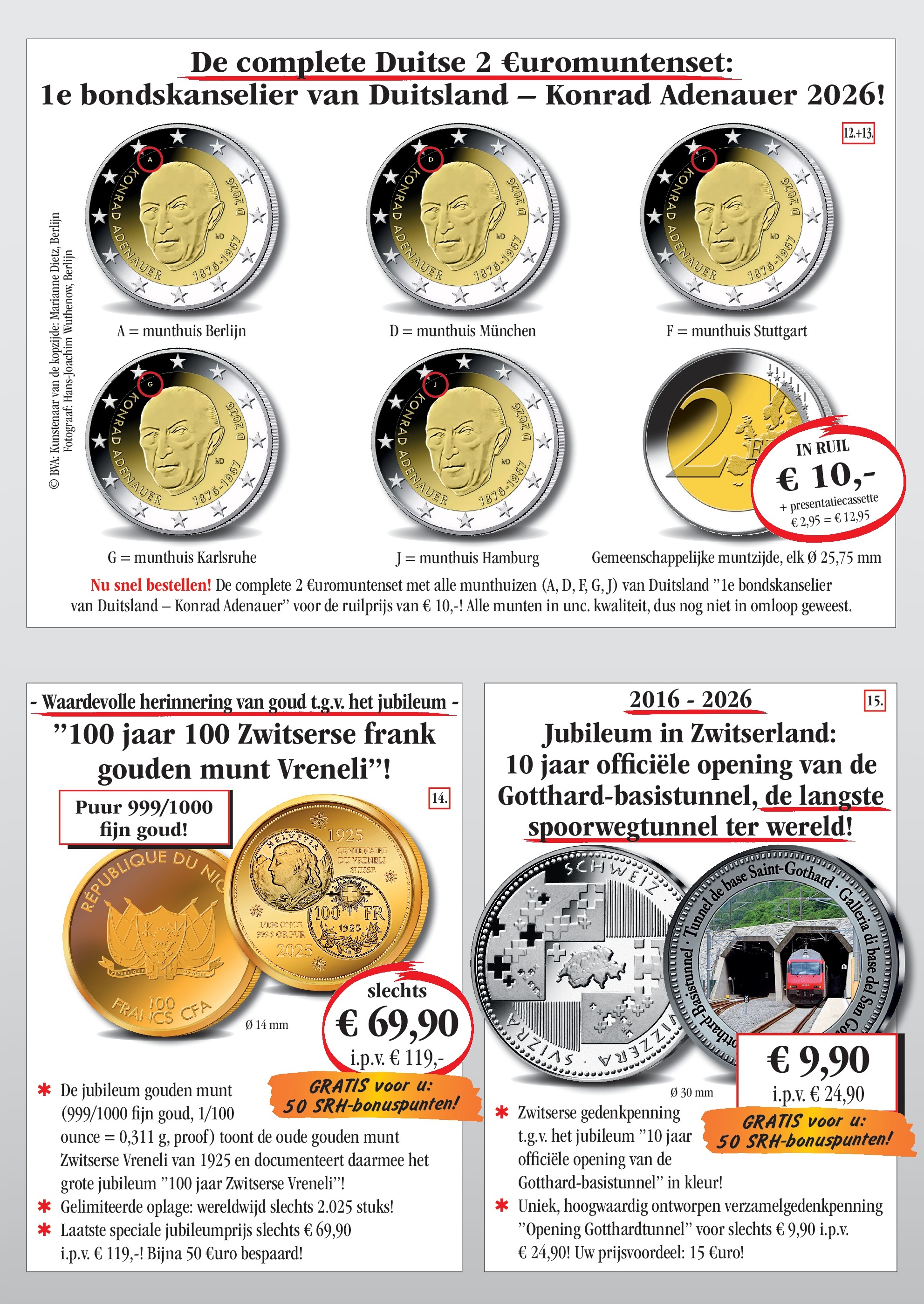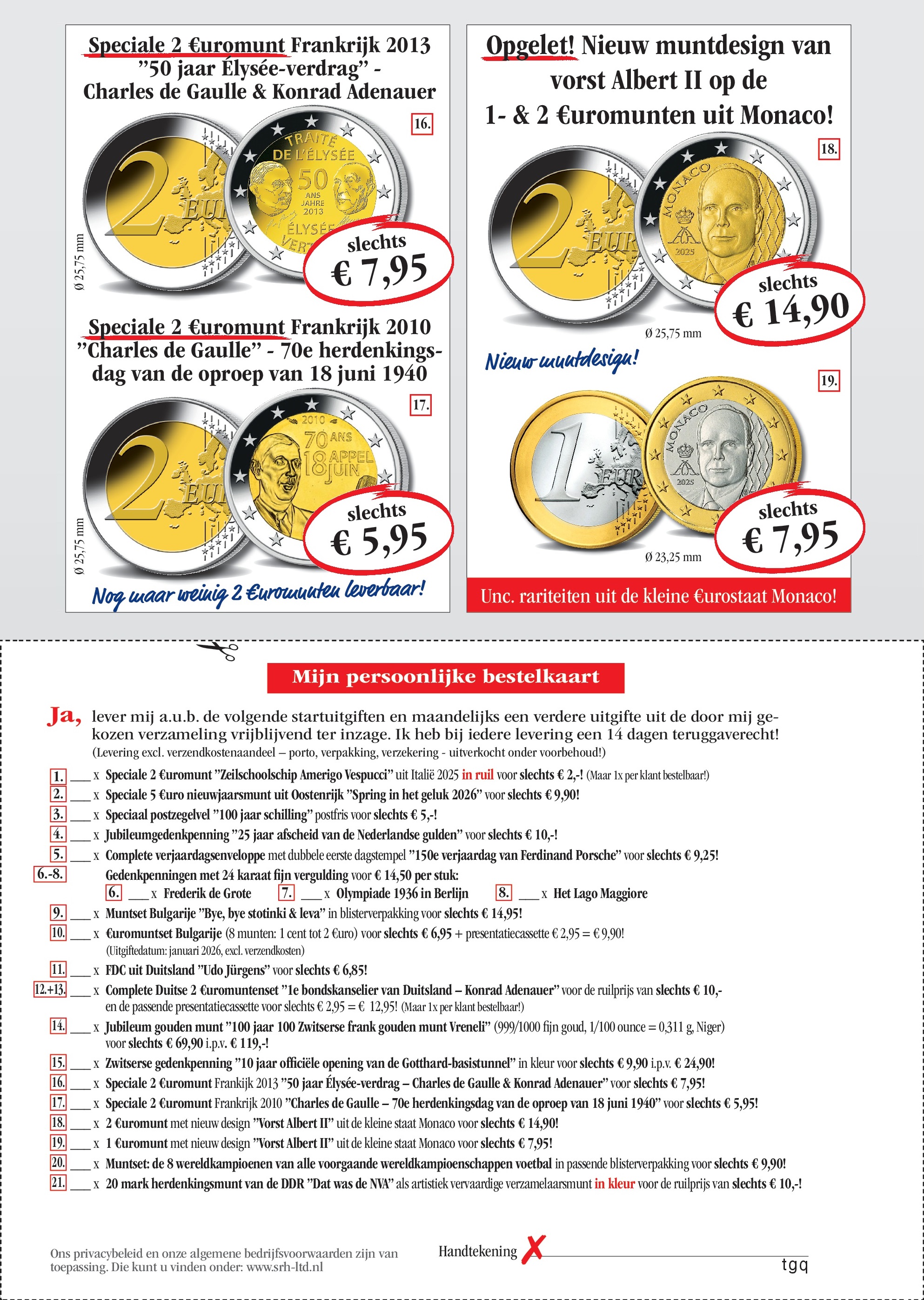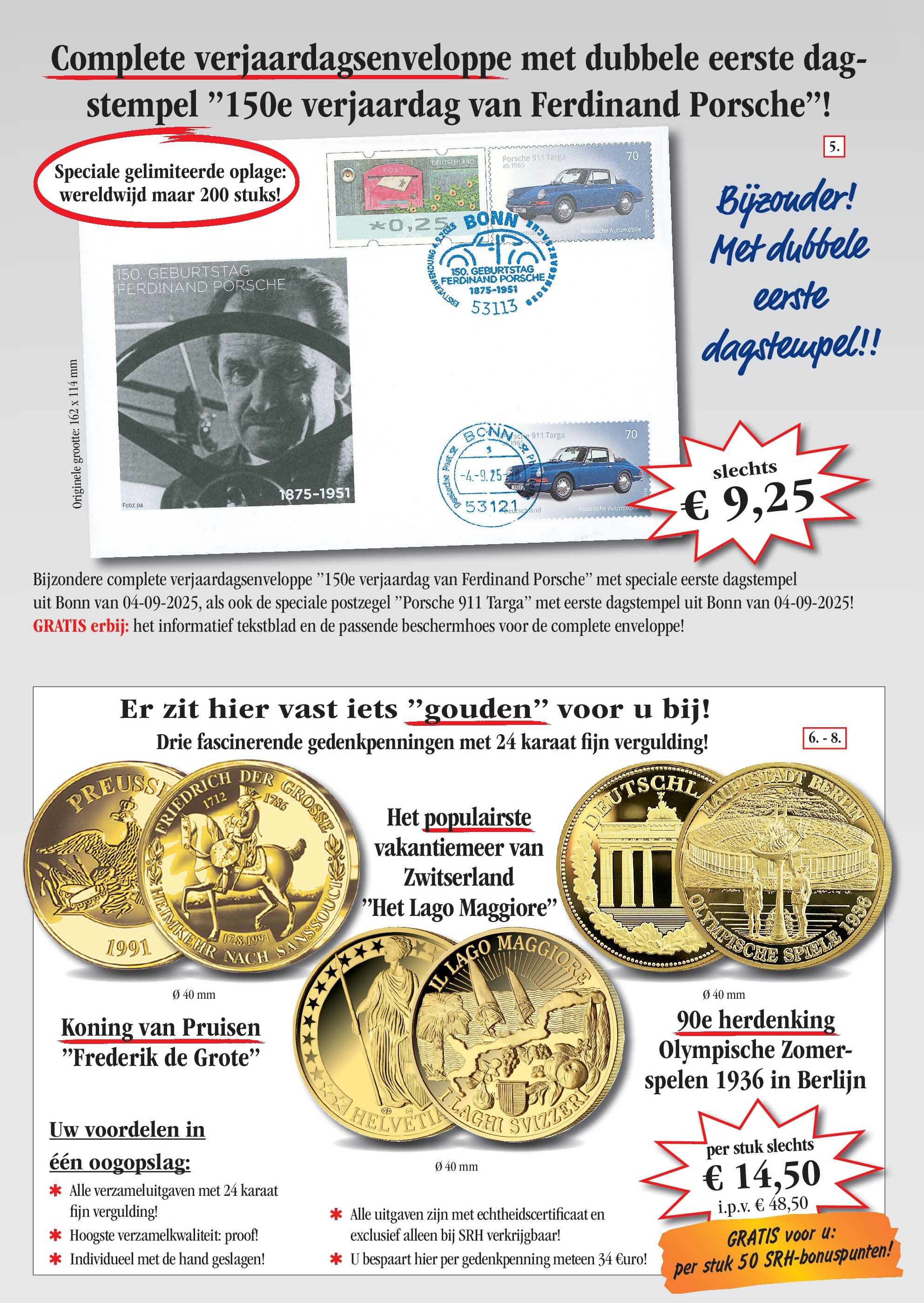 Vertrouwensgarantie/recht om te herroepen: U kunt uw opdracht zonder opgave van reden binnen 14 dagen herroepen. Een kleine mededeling of retoursturen van de producten aan SRH is voldoende. U draagt de directe kosten voor de retourzending aan Sir Rowland Hill B.V., Postbus 238, 8200 AE LELYSTAD. Onze algemene bedrijfsvoorwaarden zijn van toepassing, die u onder www.srh-ltd.nl kan zien of bij ons schriftelijk kunt aanvragen. Privacybeleid: het gebruik van uw persoonlijke gegevens voor advertenties is vertrouwelijk en alleen door SRH. De herroeping is op elk moment mogelijk, per post aan SRH of e-mail aan privacybescherming@srh-ltd.nl.
