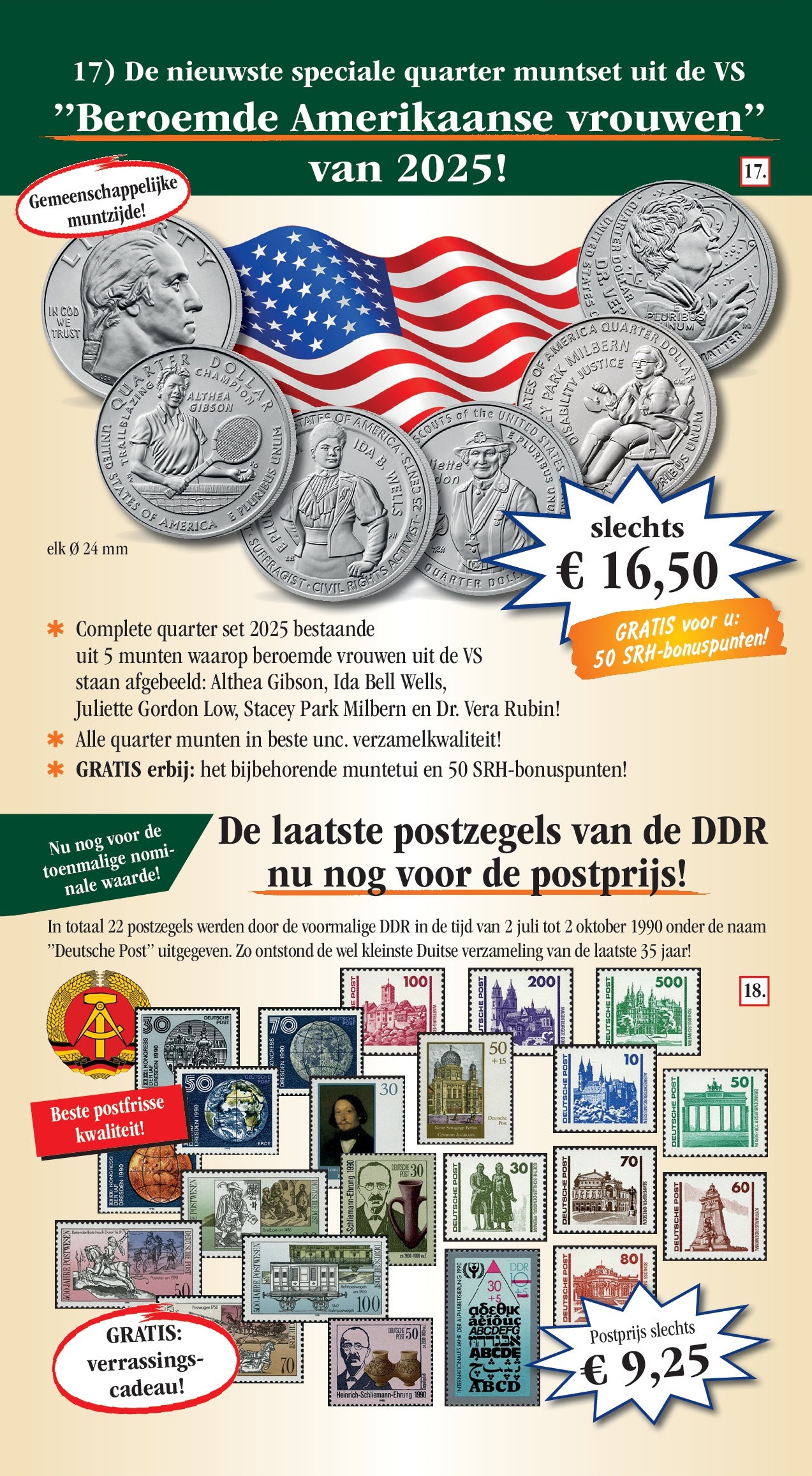 Vertrouwensgarantie/recht om te herroepen: U kunt uw opdracht zonder opgave van reden binnen 14 dagen herroepen. Een kleine mededeling of retoursturen van de producten aan SRH is voldoende. U draagt de directe kosten voor de retourzending aan Sir Rowland Hill B.V., Postbus 238, 8200 AE LELYSTAD. Onze algemene bedrijfsvoorwaarden zijn van toepassing, die u onder www.srh-ltd.nl kan zien of bij ons schriftelijk kunt aanvragen. Privacybeleid: het gebruik van uw persoonlijke gegevens voor advertenties is vertrouwelijk en alleen door SRH. De herroeping is op elk moment mogelijk, per post aan SRH of e-mail aan privacybescherming@srh-ltd.nl.
