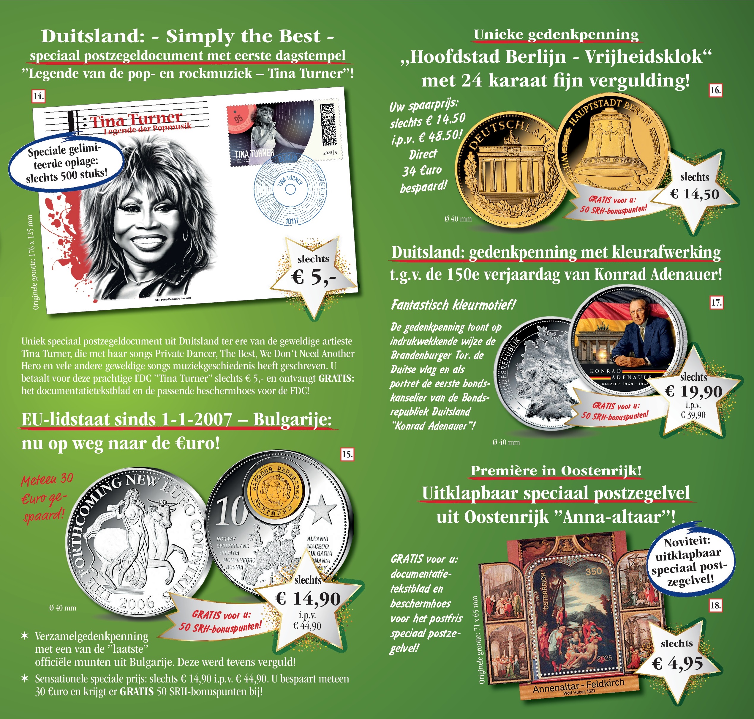 Vertrouwensgarantie/recht om te herroepen: U kunt uw opdracht zonder opgave van reden binnen 14 dagen herroepen. Een kleine mededeling of retoursturen van de producten aan SRH is voldoende. U draagt de directe kosten voor de retourzending aan Sir Rowland Hill B.V., Postbus 238, 8200 AE LELYSTAD. Onze algemene bedrijfsvoorwaarden zijn van toepassing, die u onder www.srh-ltd.nl kan zien of bij ons schriftelijk kunt aanvragen. Privacybeleid: het gebruik van uw persoonlijke gegevens voor advertenties is vertrouwelijk en alleen door SRH. De herroeping is op elk moment mogelijk, per post aan SRH of e-mail aan privacybescherming@srh-ltd.nl.