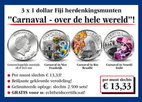 De 3 x 1 dollar Fiji herdenkingsmunten „Carnaval – over de hele wereld“!