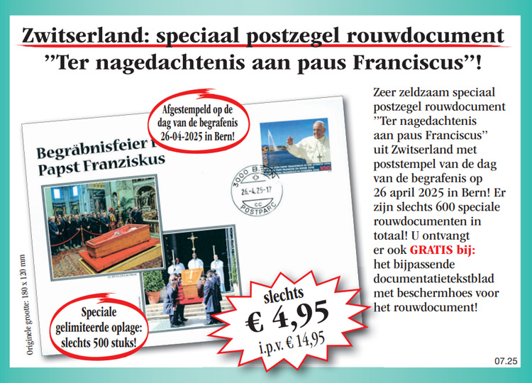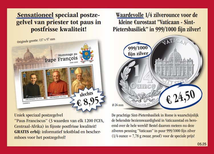 Winkelwagen U heeft nog geen artikelen in uw winkelwagen. De complete euromuntset uit het Vaticaan van 2004 met verzamelgedenkpenning „Paus Johannes Paulus II“! Verzekert u zich vandaag nog van de complete euromuntset uit het Vaticaan van 2004 (8 munten: 1 cent tot 2 euro) met hoogwaardig ontworpen verzamelgedenkpenning „Paus Johannes Paulus II“ in kleur voor de speciale prijs van slechts € 269,- en maandelijks een verdere uitgave uit deze verzameling vrijblijvend en zonder koopverplichting ter inzage. U heeft bij iedere levering een 14 dagen teruggaverecht! 269,00 € incl. wettelijke BTW Aantal: Excl. aandelige verzendkosten Dit artikel kan slechts 3 keer per klant besteld worden. Bij vragen graag contact opnemen met onze klantenservice. De complete euromuntset uit het Vaticaan van 2005 met verzamelgedenkpenning „Paus Johannes Paulus II“! Verzekert u zich vandaag nog van de complete euromuntset uit het Vaticaan van 2005 (8 munten: 1 cent tot 2 euro) met hoogwaardig ontworpen verzamelgedenkpenning „Paus Johannes Paulus II“ in kleur voor de speciale prijs van slechts € 259,- en maandelijks een verdere uitgave uit deze verzameling vrijblijvend en zonder koopverplichting ter inzage. U heeft bij iedere levering een 14 dagen teruggaverecht! 259,00 € incl. wettelijke BTW Aantal: Excl. aandelige verzendkosten Dit artikel kan slechts 3 keer per klant besteld worden. Bij vragen graag contact opnemen met onze klantenservice. Misschien is het volgende ook interessant voor u!
