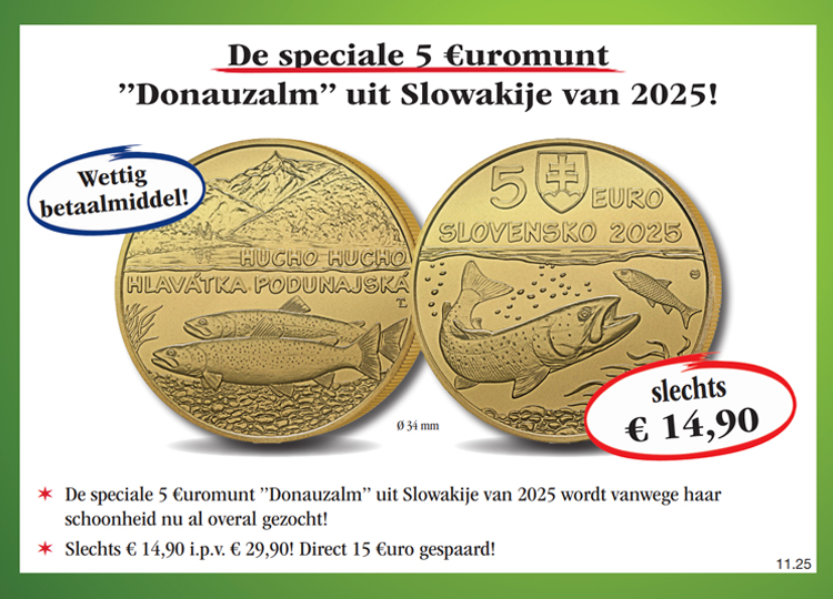 Winkelwagen U heeft nog geen artikelen in uw winkelwagen. Die officiële speciale 5 euromunt „Donauzalm“ uit Slowakije van 2025! Verzeker u nog vandaag van de officiële speciale 5 euromunt „Donauzalm“ uit Slowakije van 2025 voor de speciale prijs van slechts € 14,90 i.p.v. € 29,90 en maandelijks een verdere uitgave uit deze verzameling vrijblijvend en zonder koopverplichting ter inzage. U heeft bij iedere levering een 14 dagen teruggaverecht! in plaats van (i.p.v.) 29,90 € 14,90 € incl. wettelijke BTW Aantal: Excl. aandelige verzendkosten Dit artikel kan slechts 5 keer per klant besteld worden. Bij vragen graag contact opnemen met onze klantenservice. Misschien is het volgende ook interessant voor u!